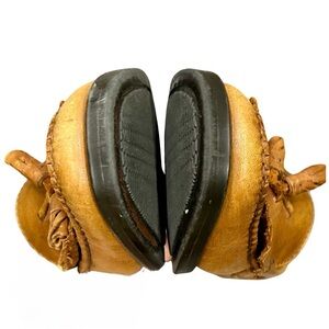 Fair vintage condition. Moderate wear throughout, including creasing, fraying on the tassels, and discoloration to the insoles. Some wear to the edges of the soles as shown. Still structurally sound with plenty of vintage charm!