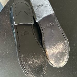 Experience the classic sophistication of G.H. Bass & Co. Black Loafers, featuring a sleek leather finish and traditional moccasin-style toe. These slip-ons are perfect for formal occasions, offering both style and comfort.