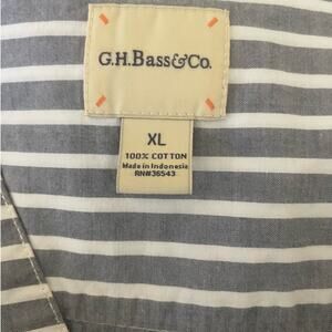G.H. & Bass Co Women Tunic Top XL Gray White Striped Cotton Preppy Coastal Light