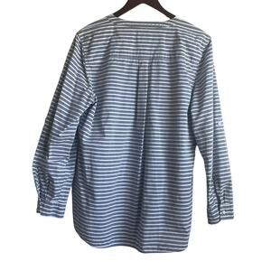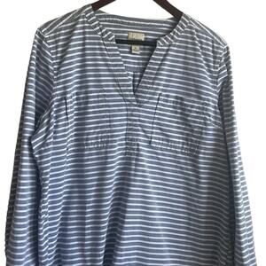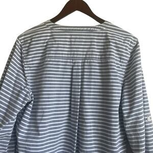 GH & Bass Co Women Tunic Top XL Gray White Striped Cotton Preppy Coastal Light