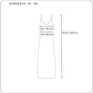 The GH Bass Co Women's Dress in XXL Plus size is a stylish slip midi dress in a beautiful blue color. This sleeveless dress features a round neck and adjustable spaghetti straps, making it perfect for various occasions such as travel and casual wear. The dress is lined for added comfort and has a button closure. Made from rayon material, this floral patterned dress is a versatile choice for all seasons. Made by G.H. Bass & Co., this dress is a must-have for any woman looking for a chic and comfortable outfit option.