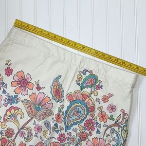 Charming ivory skirt with invisible side zipper and hook. Pink, orange, yellow, blue and green floral design. No pockets for a smooth fit. This cute lightweight lined skirt is perfect for spring or summer. See photos for approx measurements. No stains or holes excellent like new condition.