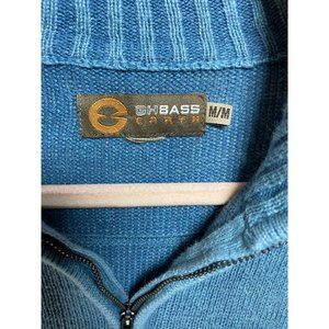G.H. Bass Earth Sweater Adult Medium Blue 1/4 Zip Knit Sweatshirt Mens.
