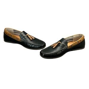 G.H. Bass Howell Black Brown Leather Tassel Slip On Driving Loafer Men 9M.