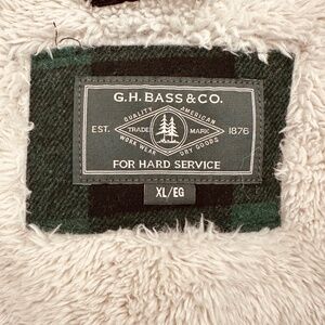 This G.H. Bass & Co. men’s jacket is rugged, warm, and ready for adventure. Size XL, in a green and black wool-blend plaid with a super-soft sherpa lining. Classic workwear look meets modern comfort. In great used condition — clean, cozy, and perfect for layering on chilly days.