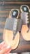 Bass go to comfort. Excellent lightly worn condition as shown. Cork. Black with brass colored studs. Between toe thong sandals