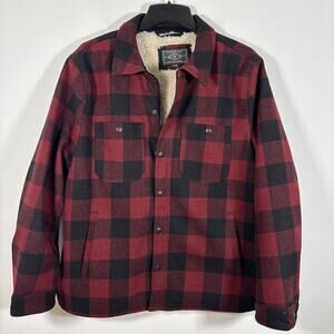 GH Bass Men Sherpa Lined Wool Blend Buffalo Plaid Zip Up Shirt Jacket XL Shacket