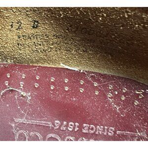 Some minor scuffing on the toe box.Right shoe heel has a paint chip on it.Left shoe has some resisdue on the side, but it should come off.