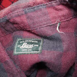 G.H Bass Mens Red Black Plaid Long Sleeve Button Down Bundle (2) In A Size Medium. These Shirts Are Preowned And Well Loved With Signs Of wear Such as Color Fade And Fabric Peeling And the Maroon Is Missing Size Tag.