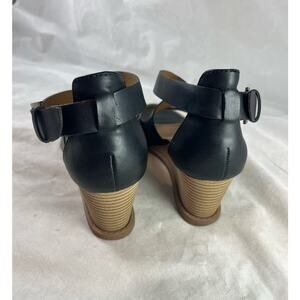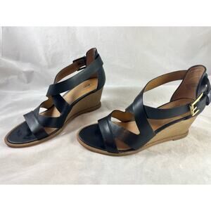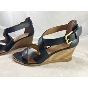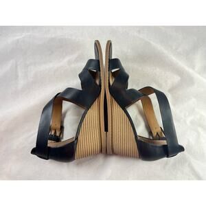 GH Bass Renae Sandals Stacked Wedge Heel Black Cross Straps US Size 7.5 M