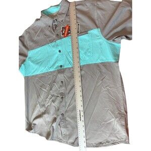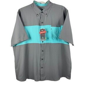 G.H. Bass Short Sleeve Button Up Sunblocker Wicking XL Gray Aqua Shirt NWT