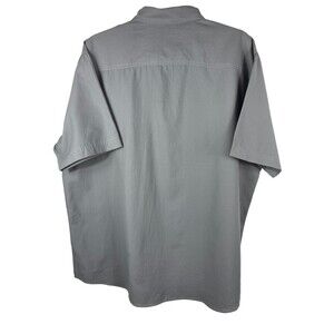 This G.H. Bass & Co. men's button-up shirt in size XL features a stylish solid pattern in a cool gray color with aqua accents. Made with a blend of polyester and cotton, this shirt is both breathable and moisture-wicking, making it perfect for outdoor activities. The short sleeves and button-down collar add to the casual and comfortable feel of the shirt.