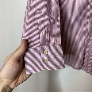 G.H. Bass Women XL Ruffle shirt NWT Saucy Plum XL Stripes 22x25”