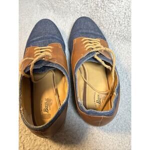 GH Bass Womens Dixie Saddle Shoes Oxfords Flats Denim Brown Trim Laces Up Sz 10M