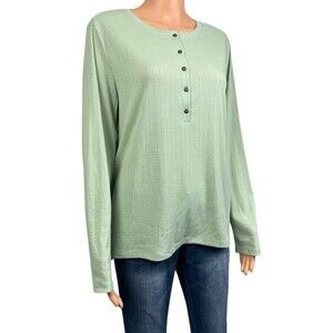 GH Bass Womens Large Light Green Shirt Top Textured Henley Long Sleeve T-Shirt