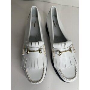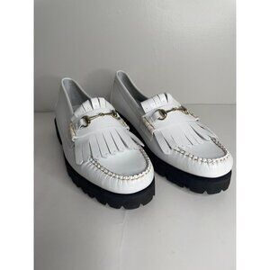 G.H. Bass Women's Lianna Kiltie Lug Loafers White Bit Buckle Fringe Platform 9.5