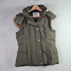 G.H. Bass Womens Puffer Vest S Green Down Feather Faux Detachable Fur Hood Warm