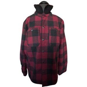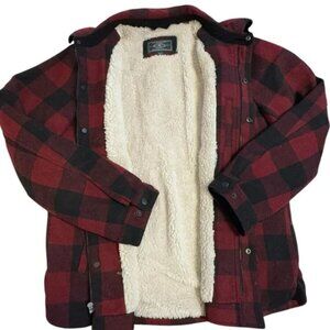 GH Bass Wool Blend Shell. Sherpa lined inside. Dual Closure Snap and Zipper. Two snap chest pockets. Snap cuffs. Inner pocket with zipper.