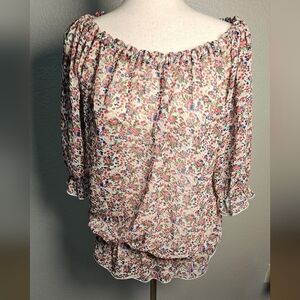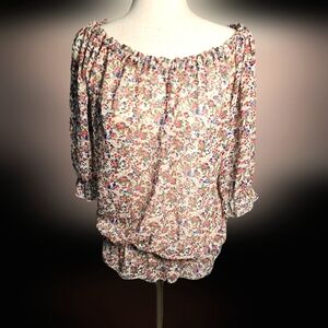 G.H. Bass and Co Floral Off-Shoulder Women's Sheer Top with peplum Size Med