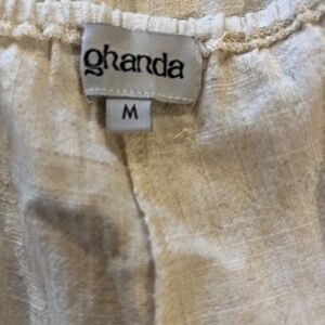 GHANDA 1984, size medium, beige70% viscose, 30% linen pants, front pockets on both sides, drawstring waist with 27" inseam. Excellent condition.
