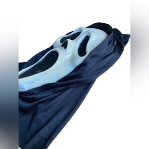 This is a used GhostFace Scream Mask the tag says 9206SFD April-June 2011. It is in used condition. The mask is no longer attached to the hood. It would need to be glued back on. The mask has yellowed and the chin is dented. See all pics A great classic Halloween mask though!!