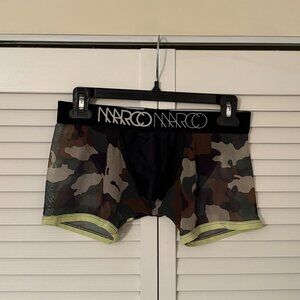 The G.I. boxer brief by Marco Marco is the ultimate hunkwear, bringing a whole new meaning to the term "salute your shorts." The stay-dry solid spandex will keep your front and back high and dry, while the camo-patterned mesh legs will keep you cool on the dance floor. This low-rise pair also features eye-catching neon yellow trim in all the right places. This boxer brief is designed to prevent ride-up, keeping 'em looking smooth, whether or not you keep your pants on.