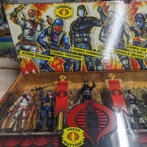 G.I. Joe action figure set with excellent artwork. Cobra set with commander in black and his logo plays cobra's theme song!