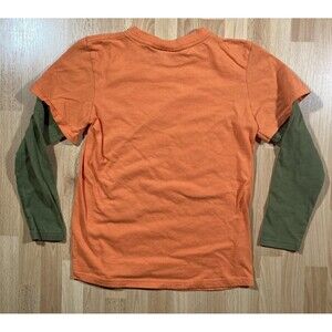 Shirt is in excellent shape. Over sleeves are two different colors, orange and olive green. No stretching or staining. 100% Cotton. Shirt date is 2009.