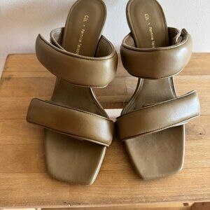 Italian Leather Slides Olive with velcro straps