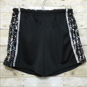 Gia Mia black mesh & sequin trim Just for Kix action cheer dance shorts size small. Gently used.