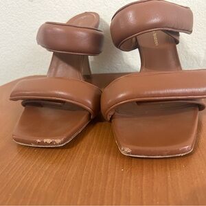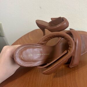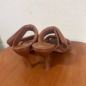 GIABORGHINI Perni Two-Band Puffy Slide High-Heel Sandals Brown Leather Size 38.5