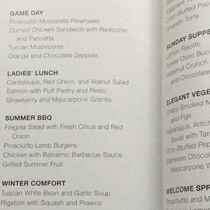 Menus: Apres-ski, Italian Picnic, Game Day, Movie Night, Ladies’ Lunch