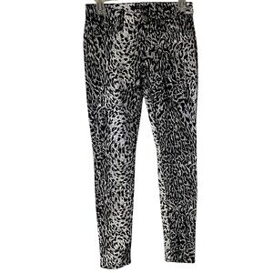 Super chic leopard jeans! Great with black tee and boots! Five pocket jeans with silver hardware detail. Made from a blend of cotton/spandex. Length measures 37 inches. Inseam measures 28 inches. Rise measures 8 inches. Waist lying flat measures 13 inches. Excellent preowned condition.