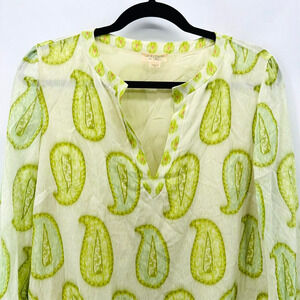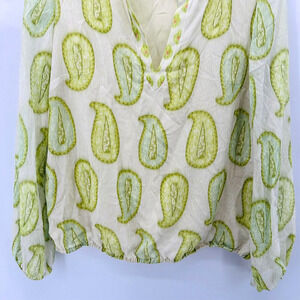 GIAMBATTISTA VALLI PARIS Blouse Silk Sheer Sz M It 44 Green Paisley Luxury Money