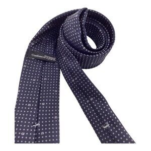 GIANFRANCO FERRÉ Blue Geometric Monogrammed Silk Slim Tie Italy W: 2.8" EX COND