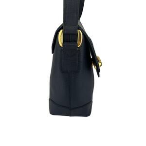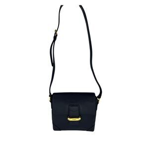 Crossbody bag in saffiano textured leather with adjustable shoulder strap and gold-tone hardware. Comes with dust cover. There is also a matching wallet available for sale.