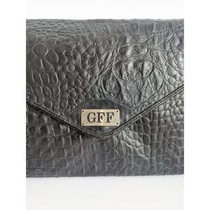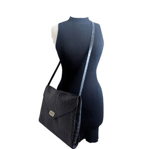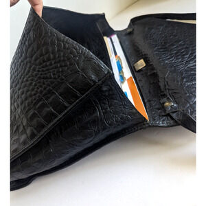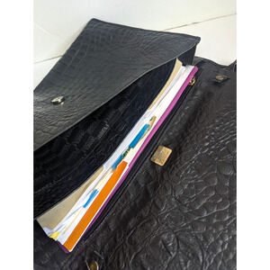 GIANFRANCO FERRE XL Black Crocodile Embossed Leather Clutch Bag Briefcase 80s