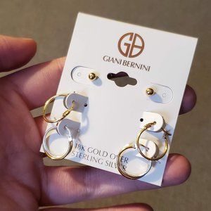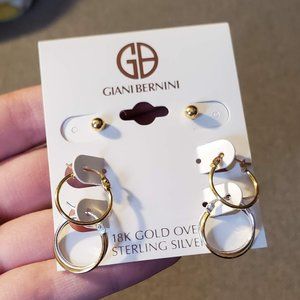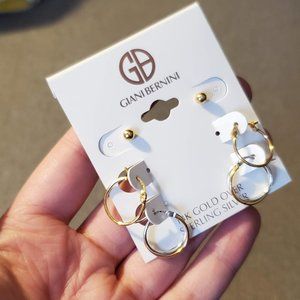 GIANI BERNINI 3PC. Set Small Hoop Ball Stud Earrings Sterling Silver & 18K Gold.