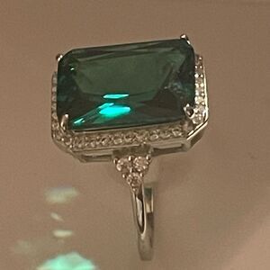 Drama is the key with this dazzling rectangular shaped emerald colour cubic zirconia statement ring from Giani Bernini.