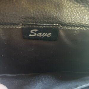 Silver-tone hardware; back zip pocket; signature plaque at front