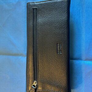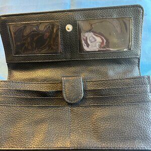 Interior features 13 card slots, 2 bill compartments, 3 accordion compartments, 2 ID windows; can fit large cell phones