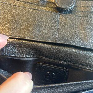 GIANI BERNINI WALLET Tri-Fold Pebble Leather Receipt Flap Black Silver Hardware