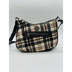 GIANI BERNINI nylon plaid medium hobo shoulder bag -Black /White/ Red -NEW