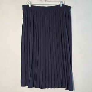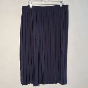 GIANNA Pull On Elastic Waist Midi Length Navy Pleated Full Career Skirt SZ 16