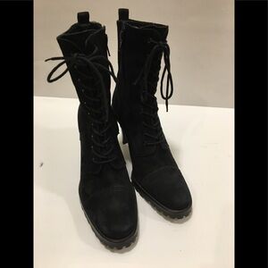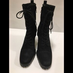 GIANNI BINI BLACK SIDE ZIP LACE FRONT LEATHER SUEDE HIGH HEEL BOOTS WOMENS SZ 7,5 M, EXCELLENT CONDITION, MAY CONTAIN SCUFFS OR SCRATCHES FROM NORMAL WEAR. PLEASE SEE PICTURES, WORN MAYBE TWICE, NO TRADES