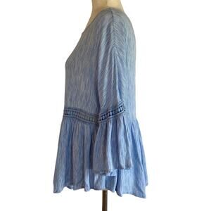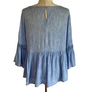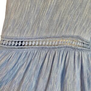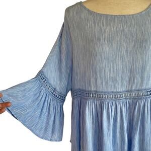 GIANNI BINI Bohemian Babydoll Lace Trim Top Heather Blue Size Small Bell Sleeve