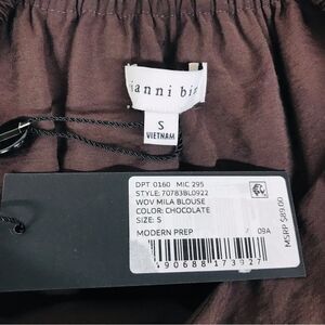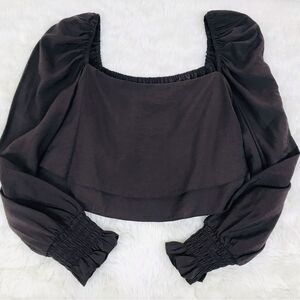 GIANNI BINI Brown Cropped Peasant Blouse Top Puff Sleeve Square Neck Small New