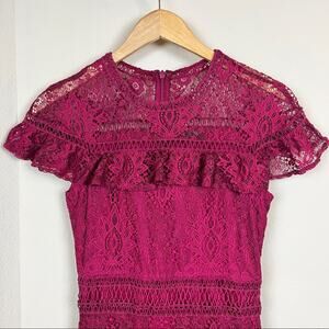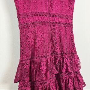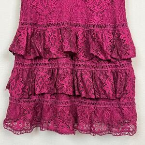 GIANNI BINI Burgundy Lace Ruffle Tier Mini Dress 0 XS Cute Party Chic Cocktail