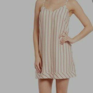GIANNI BINI Cream Red Stripe Sleeveless Spaghetti Strap Shift Dress Size Medium