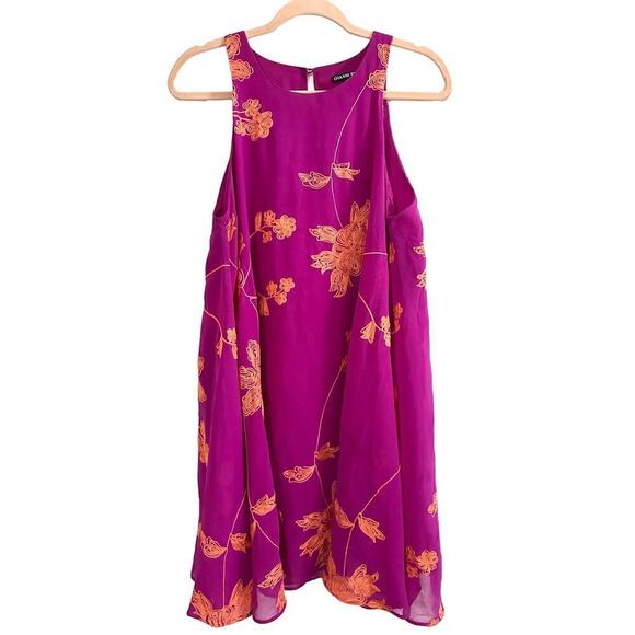 GIANNI BINI Fuchsia Orange Embroidered Floral Sleeveless Dress - Sz Small